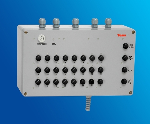 Прибор громкоговорящей связи с внешним громкоговорителем, встроенным и внешним микрофонами, на двадцать четыре направления